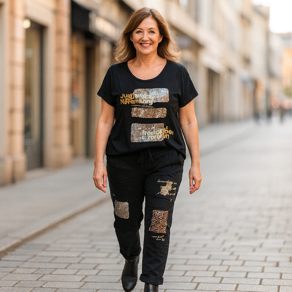 La Babucha MINERVA es una prenda soñada, confeccionada en gabardina con spandex que garantiza comodidad y flexibilidad. Sus delicados detalles en foil dorado le aportan un toque refinado, ideal para eventos casuales o formales. Perfecta para quien busca estilo sin sacrificar confort. Versatilidad y elegancia en cada ocasión.